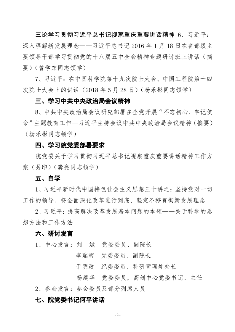 重科凯发k8官网2019年第6次中心组(扩大)学习会会议议程