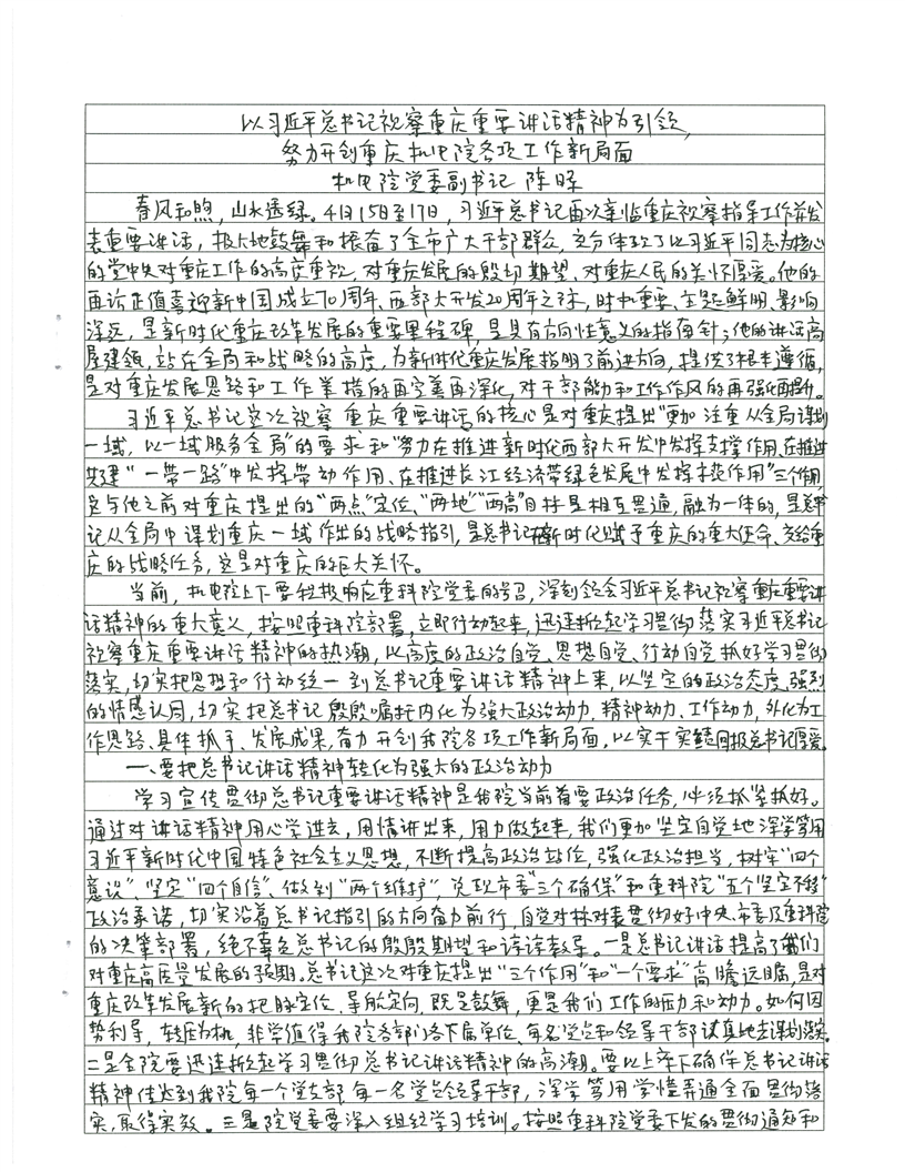 以习近平总书记视察重庆重要讲话精神为引领,努力开创重庆机电院各项工作新局面 - 陈晖