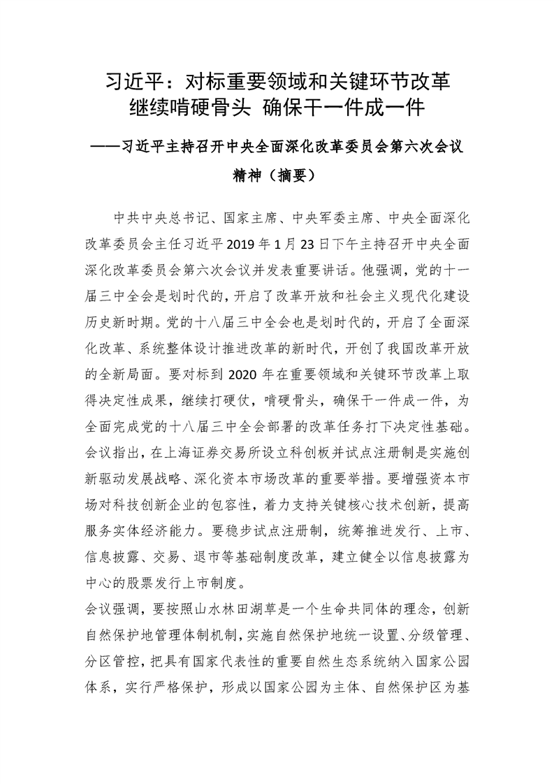 习近平:对标重要领域和关键环节改革继续啃硬骨头 确保干一件成一件 ——习近平主持召开中央全面深化改革委员会第六次会议精神